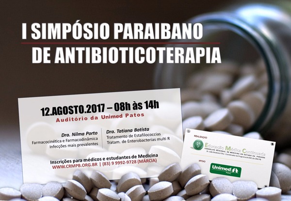 O CRM-PB realiza no dia 12 de agosto, o I Simpósio de antibioticoterapia, no auditório da unimed Patos, no horário das 8h às 14h.